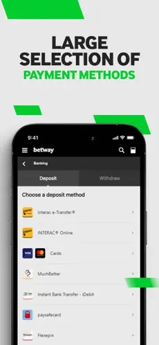 On the Betway Canada app, users have up to eight payment methods for deposits and withdrawals. These include options like Interac, VISA, MasterCard, MuchBetter, and Payz. Notably, these are the same as what’s available on the PC website. Betway offers Canadians relatively friendly payment conditions. The minimum deposit and withdrawal amount is $10, which is relatively low.