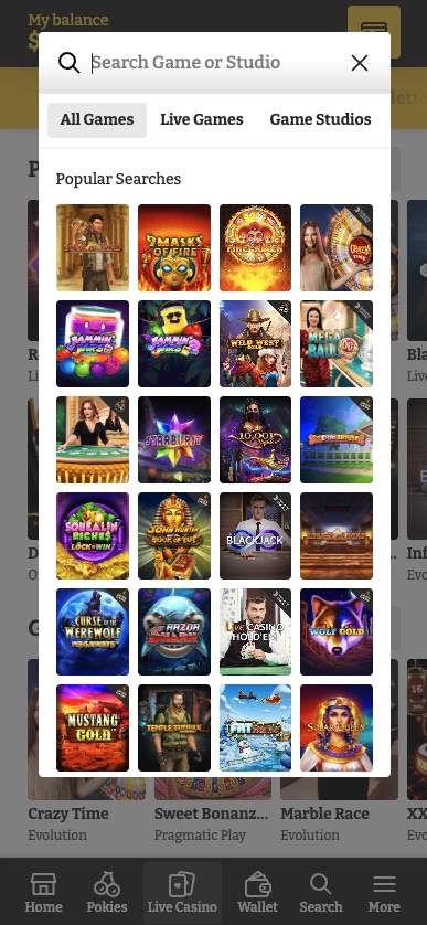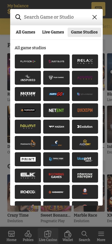 Lucky Spins hosts around 300 live-dealer tables and game shows. The Evolution lobby features headline acts like Lightning Roulette, Crazy Time and Blackjack Party. Pragmatic Play Live supplies colourful productions such as Sweet Bonanza Candyland and Mega Wheel, while Ezugi rounds things out with other favourites like Speed Roulette and Sic Bo.